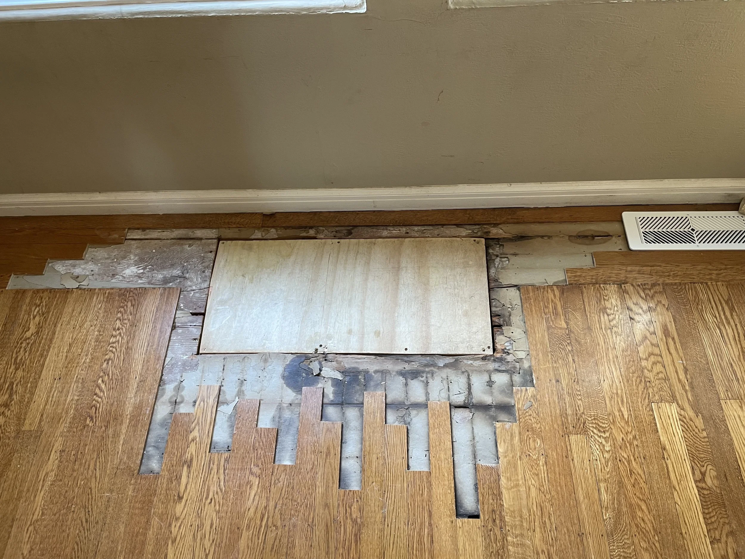 The second year I was here, I decided to add central air. They removed the floor furnaces and used one of the spaces for air intake. the other, in the dining room, they put a piece of plywood over where the furnace used to be. Pretty ugly so I covered it with a table and rug most of the time.